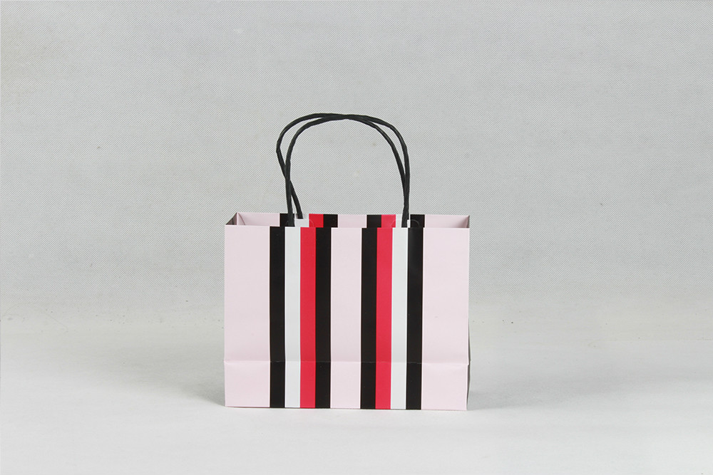 時尚彩條化妝品白卡紙袋定制