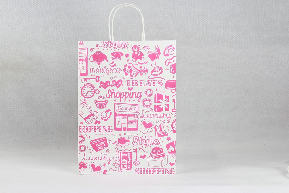 粉色卡通唯美牛皮服裝紙袋定制